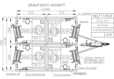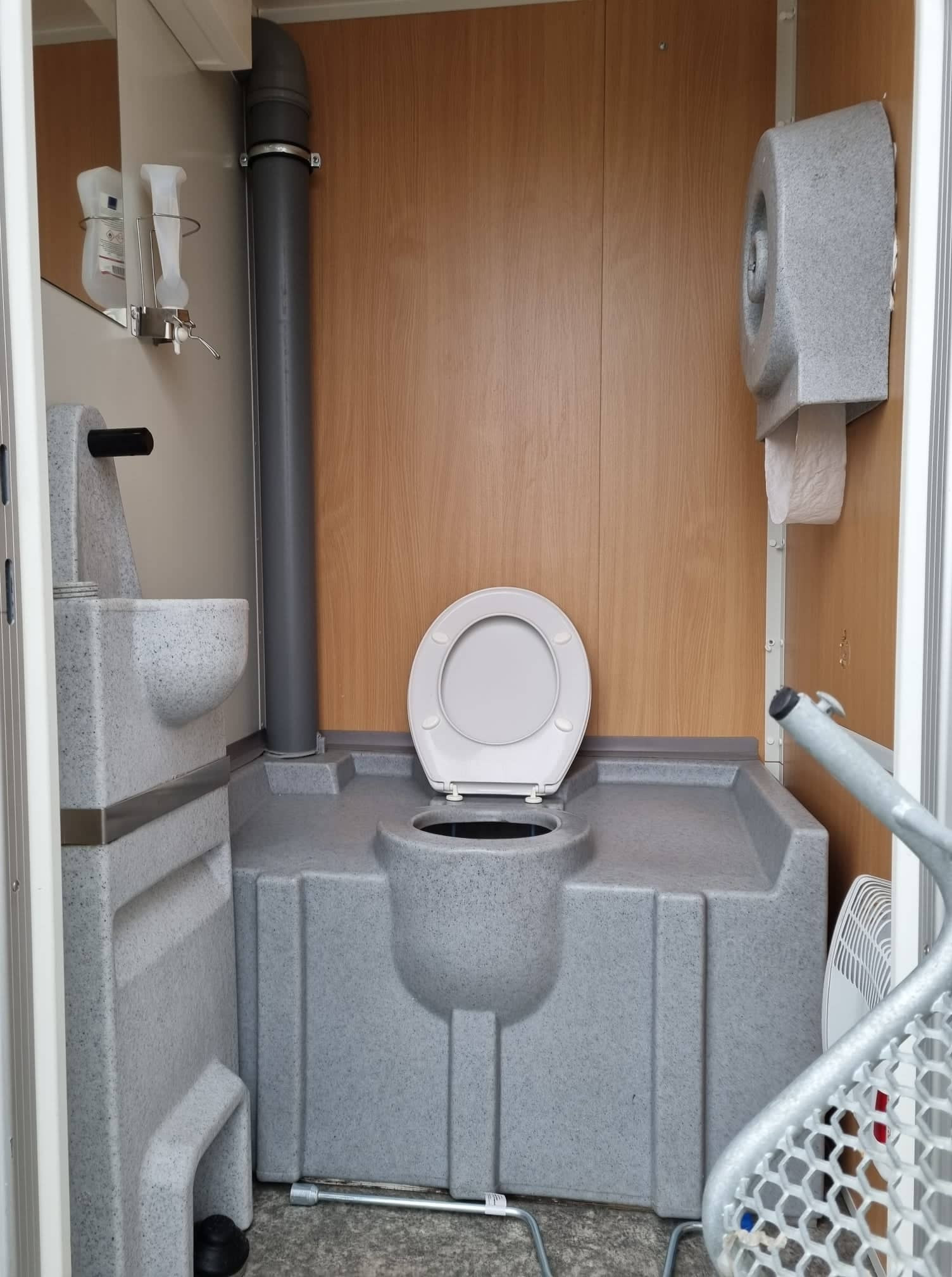 Toalettvogn på hjul med 4 separate tanktoalett.